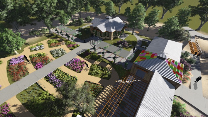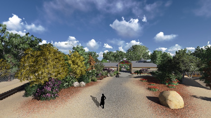 Apart of Phase 1 is apart of the High Desert Rose Garden and provides restrooms, storage, and a pre-prepared food service snack bar and patio for an adjacent and separate Glasshouse building.