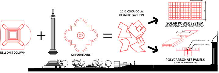 The sustainable design is based on an environmental analysis of the site, London’s Trafalgar Square.
