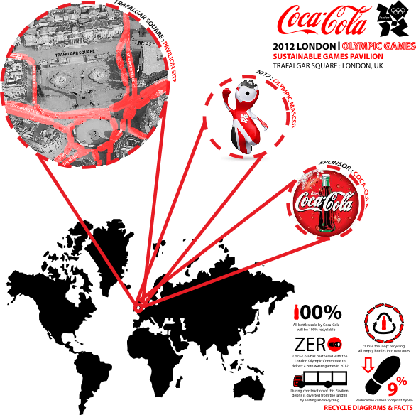 The actual pavilion will be made up of a souvenir shop and a place to have lunch or a quick drink all while informing you that sustainability and regeneration are at the heart of everything that London Olympics 2012 is. Coca-Cola hopes to use the power of the Games and this pavilion to highlight a major global issue in recycling.