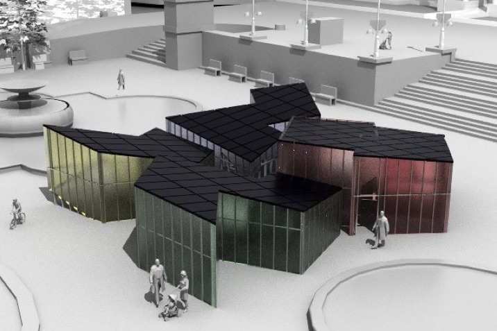 This design is based on the actual Olympic logo the intent is to use recycled materials to create the pavilion and solar panels installed on the top generate power for use in the pavilion.